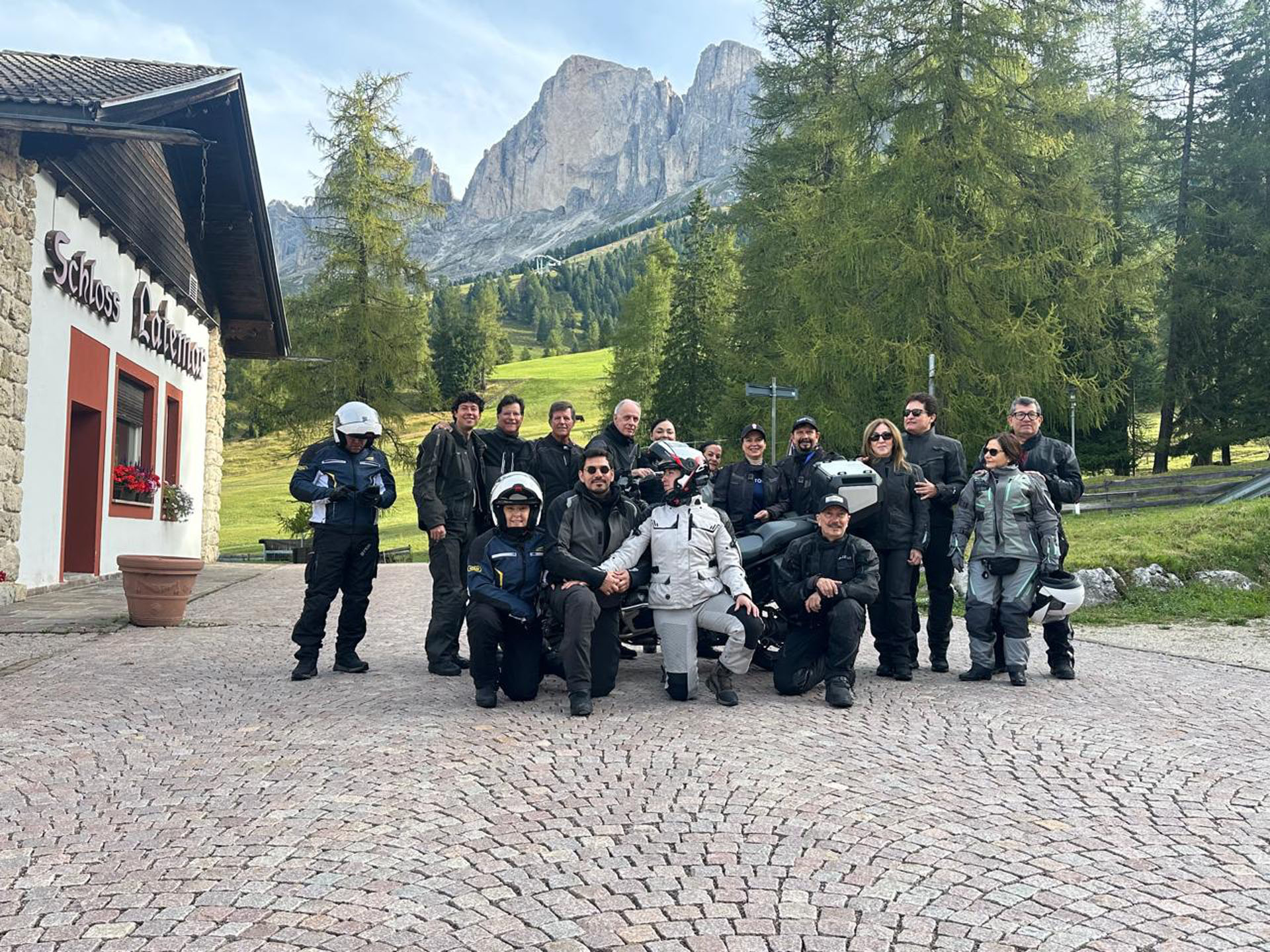 El rugido del motor vuelve a resonar entre montañas. Entramos en los Dolomitas, donde cada curva parece diseñada por un artista y cada mirador ofrece un paisaje que corta la respiración. Rodamos entre bosques de pino, praderas alpinas y picos que se tiñen de dorado al atardecer. La jornada termina en un hotel de montaña, cálido y elegante.