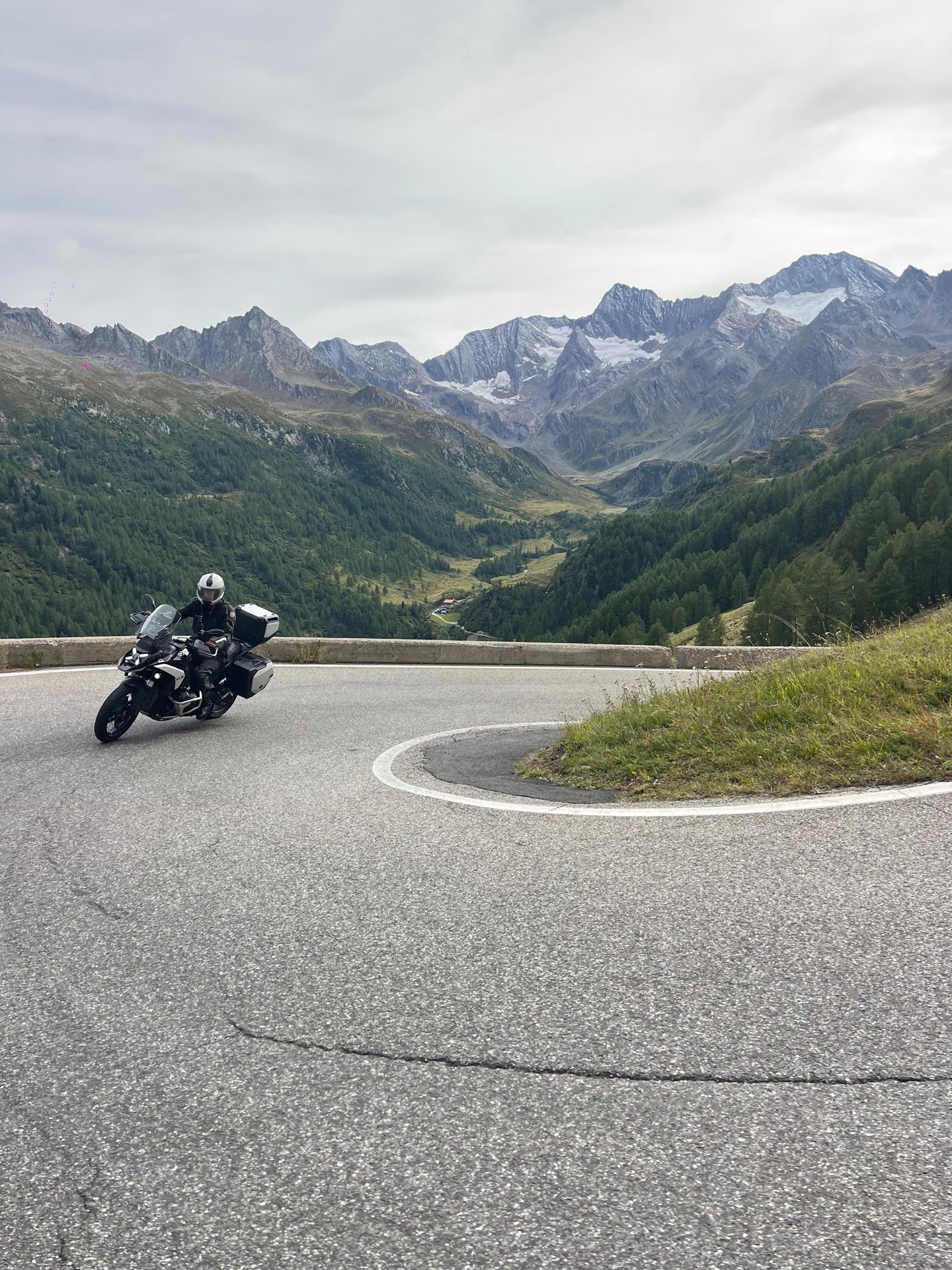 Un día dedicado a los pasos más emblemáticos de los Alpes: carreteras que todo motociclista sueña recorrer al menos una vez en la vida. La adrenalina se mezcla con la serenidad del paisaje. Las curvas perfectas, el aire fresco y las vistas infinitas hacen que cada kilómetro valga oro. Por la noche, el grupo se reúne a brindar: todos comparten la misma sonrisa… la de quien ha conquistado las montañas.